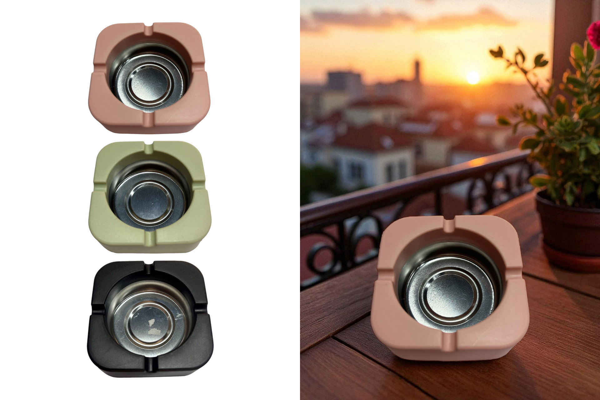Aschenbecher, 9,5x9,5x3,5cm, 3 Farben