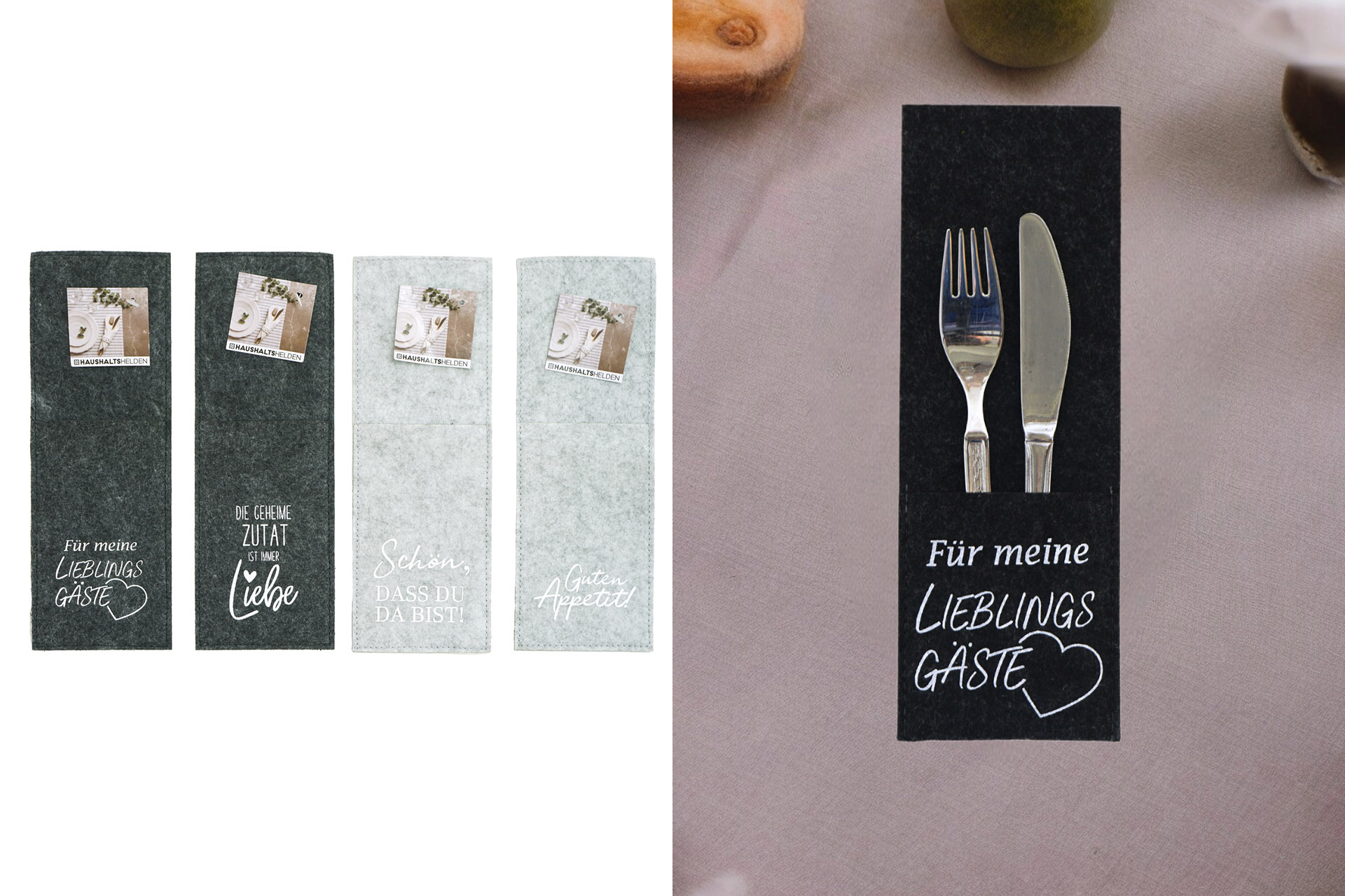 Produktinformationen "Bestecktasche Filz mit Spruch, 4 Sprüche, 2 Farben, 26x9cm"