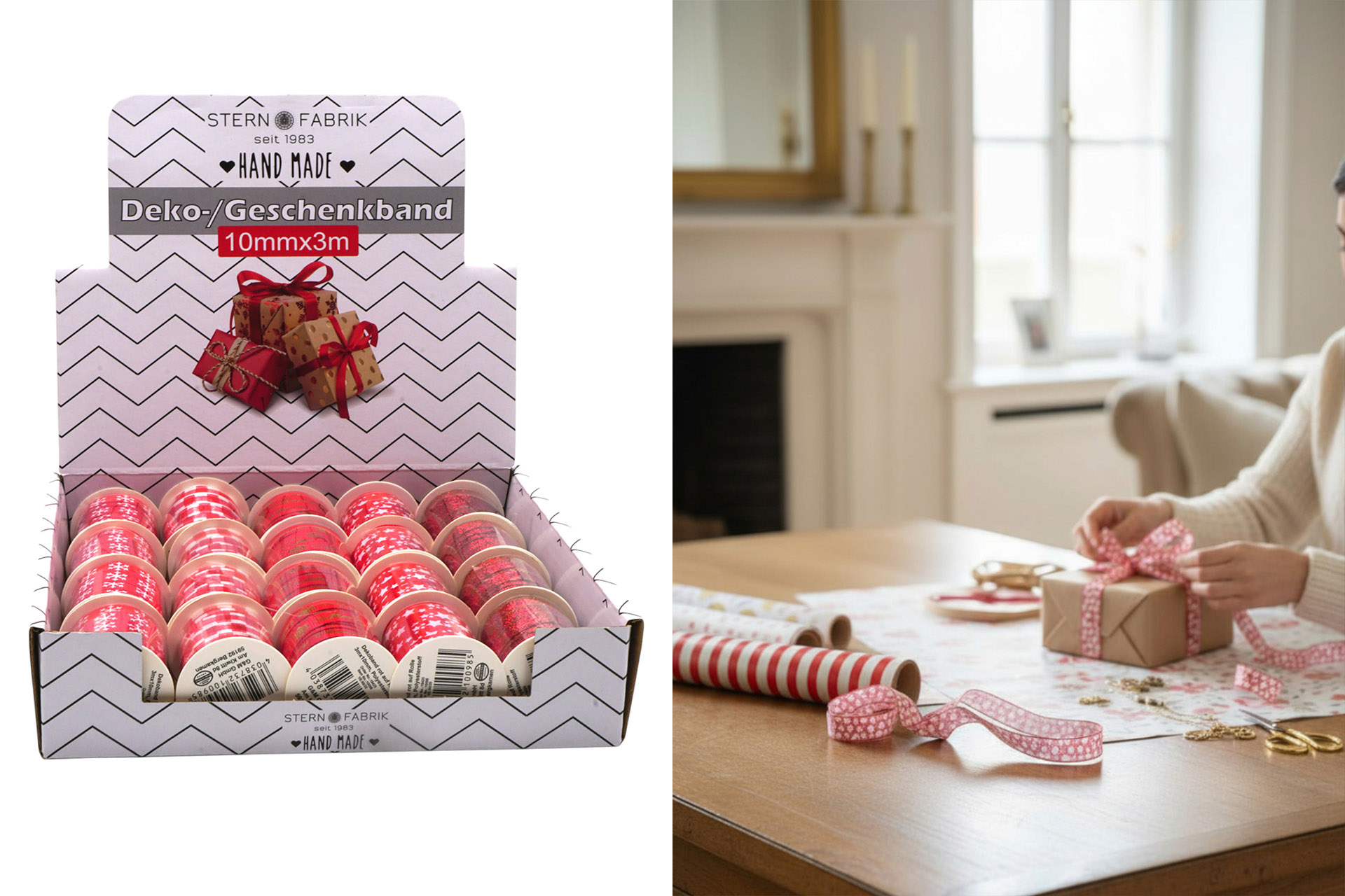Dekoband rot auf Rolle 3m x 10mm, Display