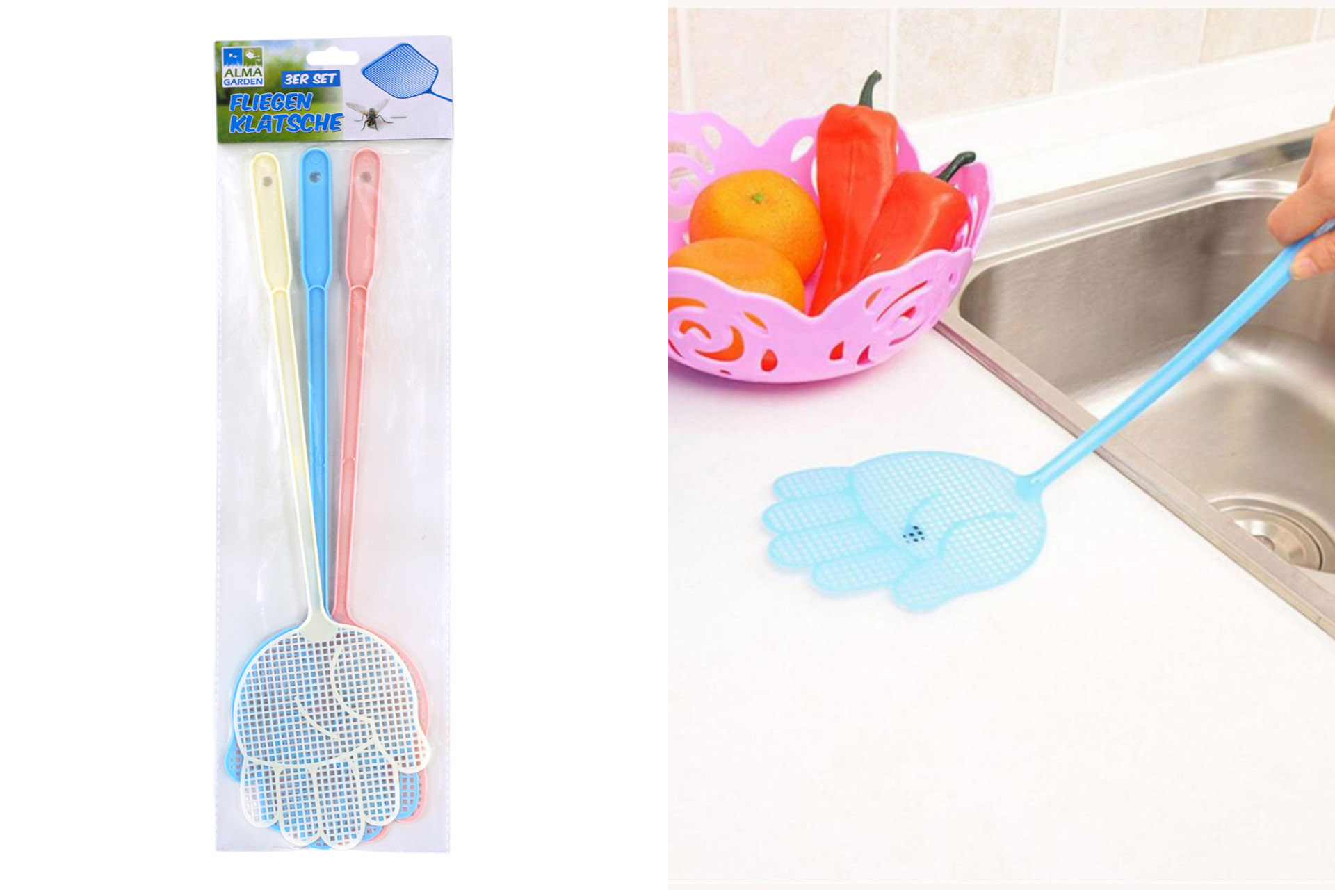 Fliegenklatsche 42cm, 3er Polybag mit Headerkarte