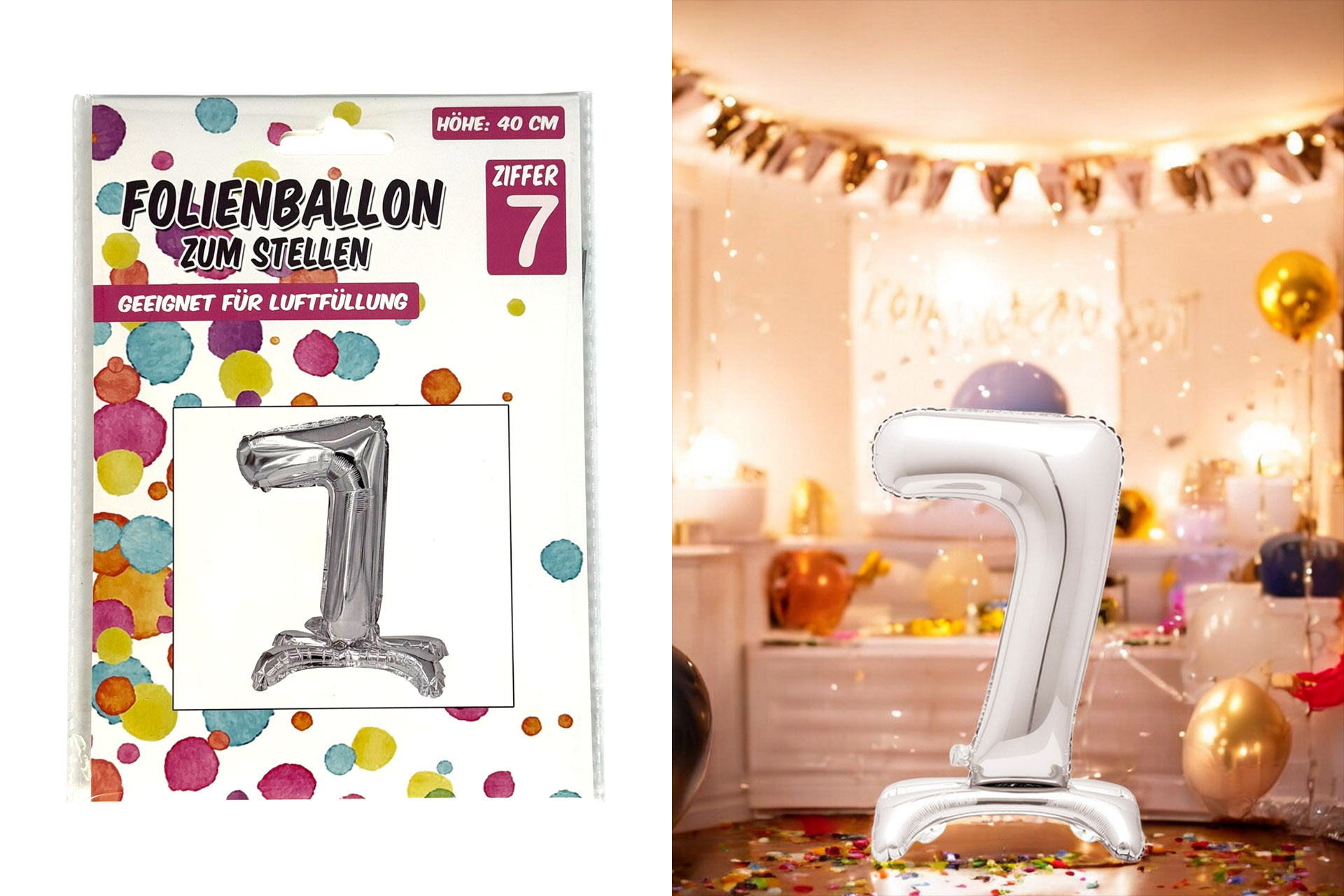 Folienballon zum Hinstellen "7", 40cm, in silber