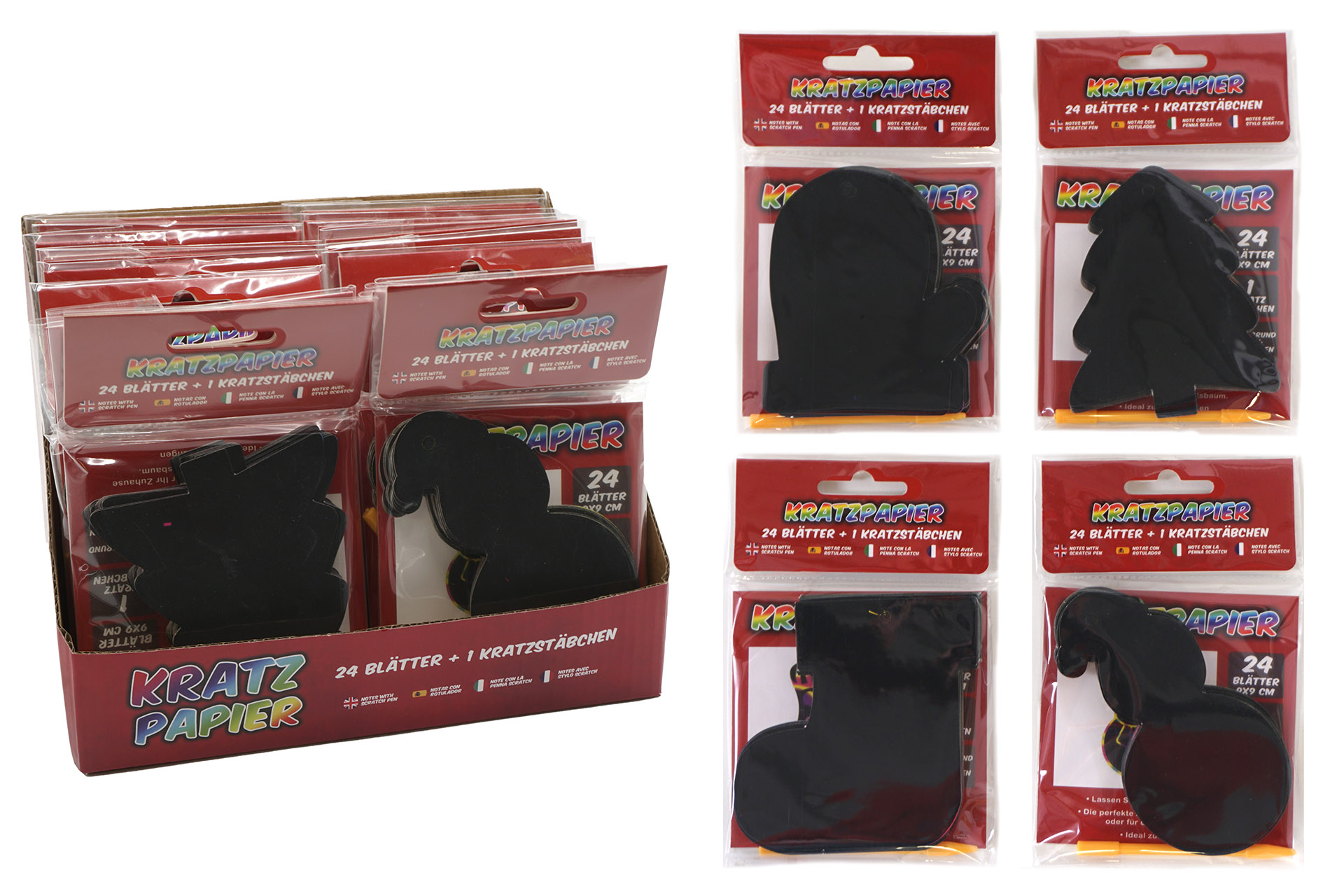 Kratzpapier 24 Blatt mit Kratzstäbchen Weihnachten, 9x9 cm, im Display