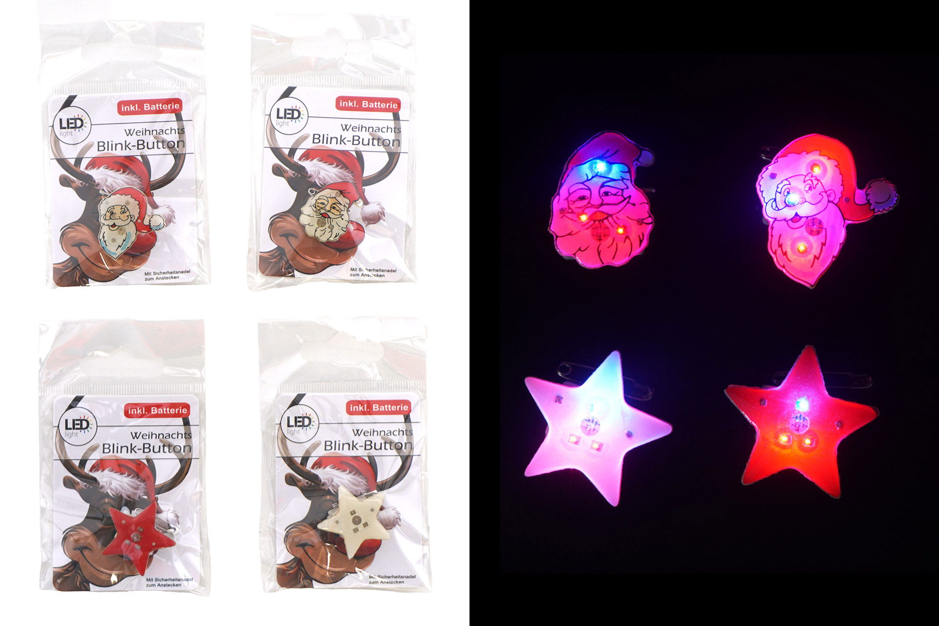 LED Weihnachtsanstecker Blink-Button, 4 Designs