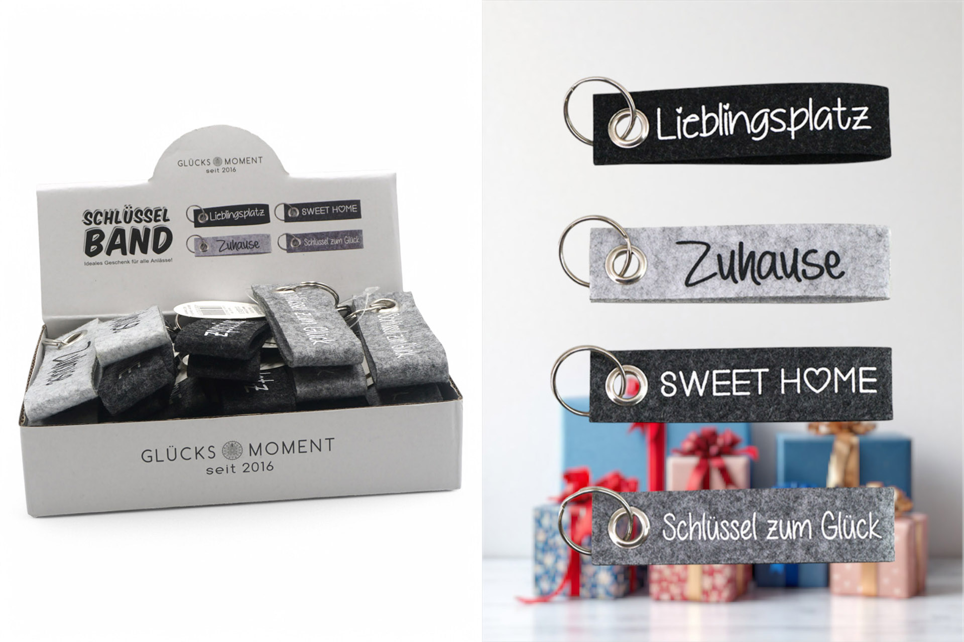 Schlüsselband Filz, 10x2,5cm, 4 Farben, im Display