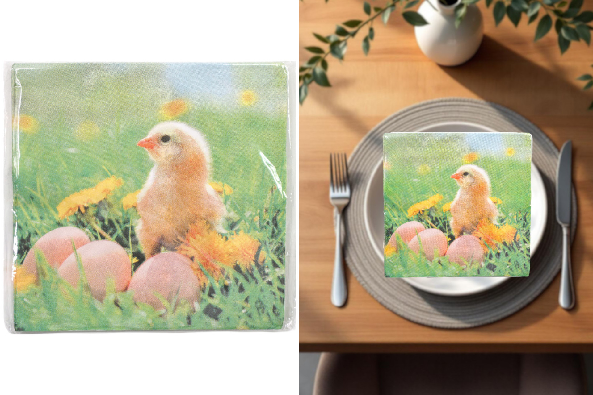 Servietten Ostern "Küken&Ei" 33x33cm, ¼ Falz, 3-lagig, 20er Pack