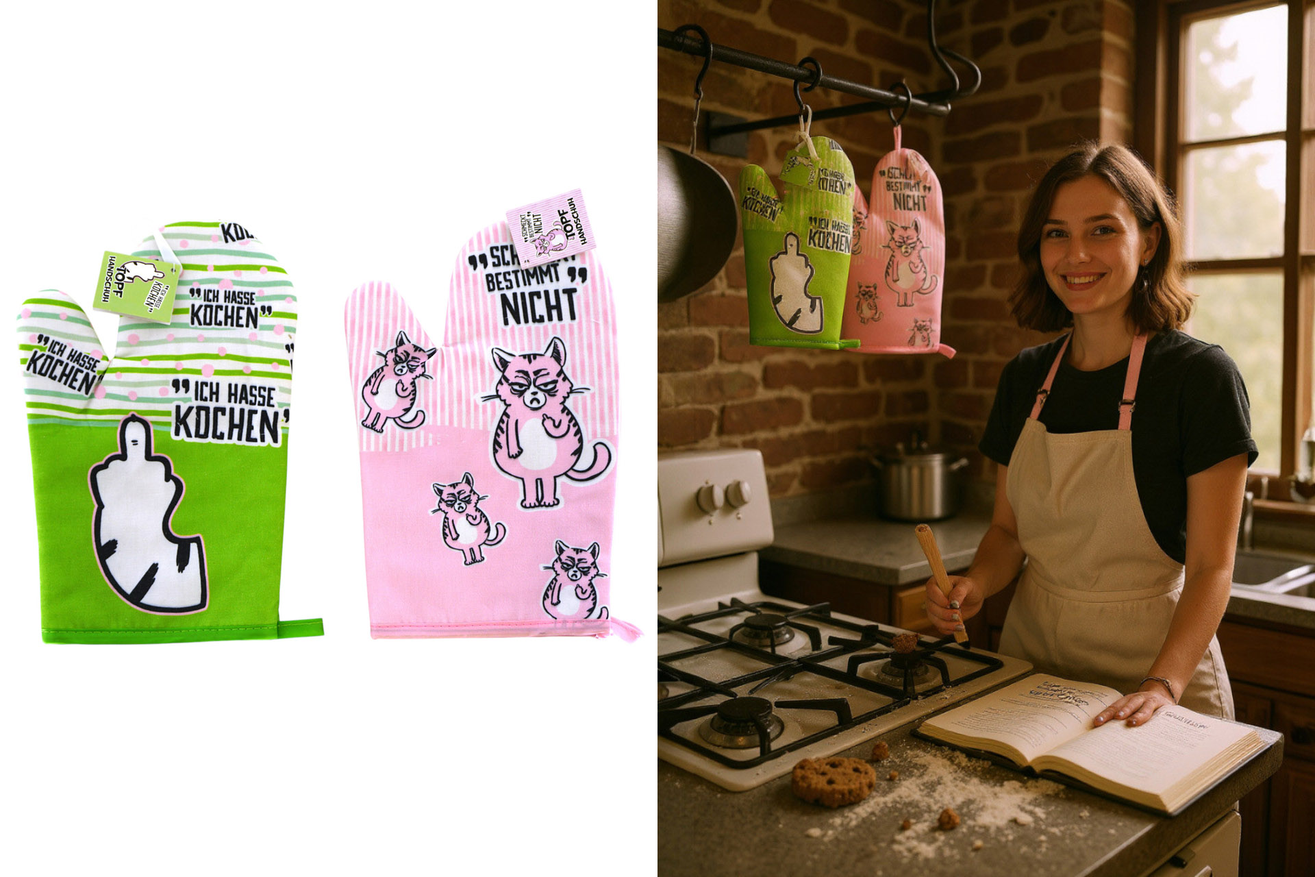 Topfhandschuh "Miesekatze", 27x18x2,5cm, 2 Designs