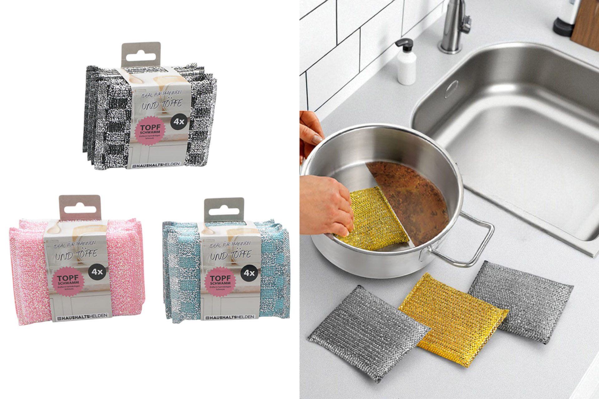 Topfschwämme, 4er, 3 Farben sortiert