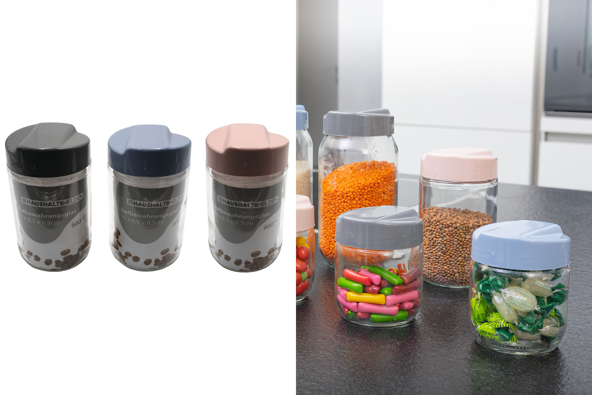 Vorratsglas, 15x8,5x8,5cm, 660ml, 3 Farben