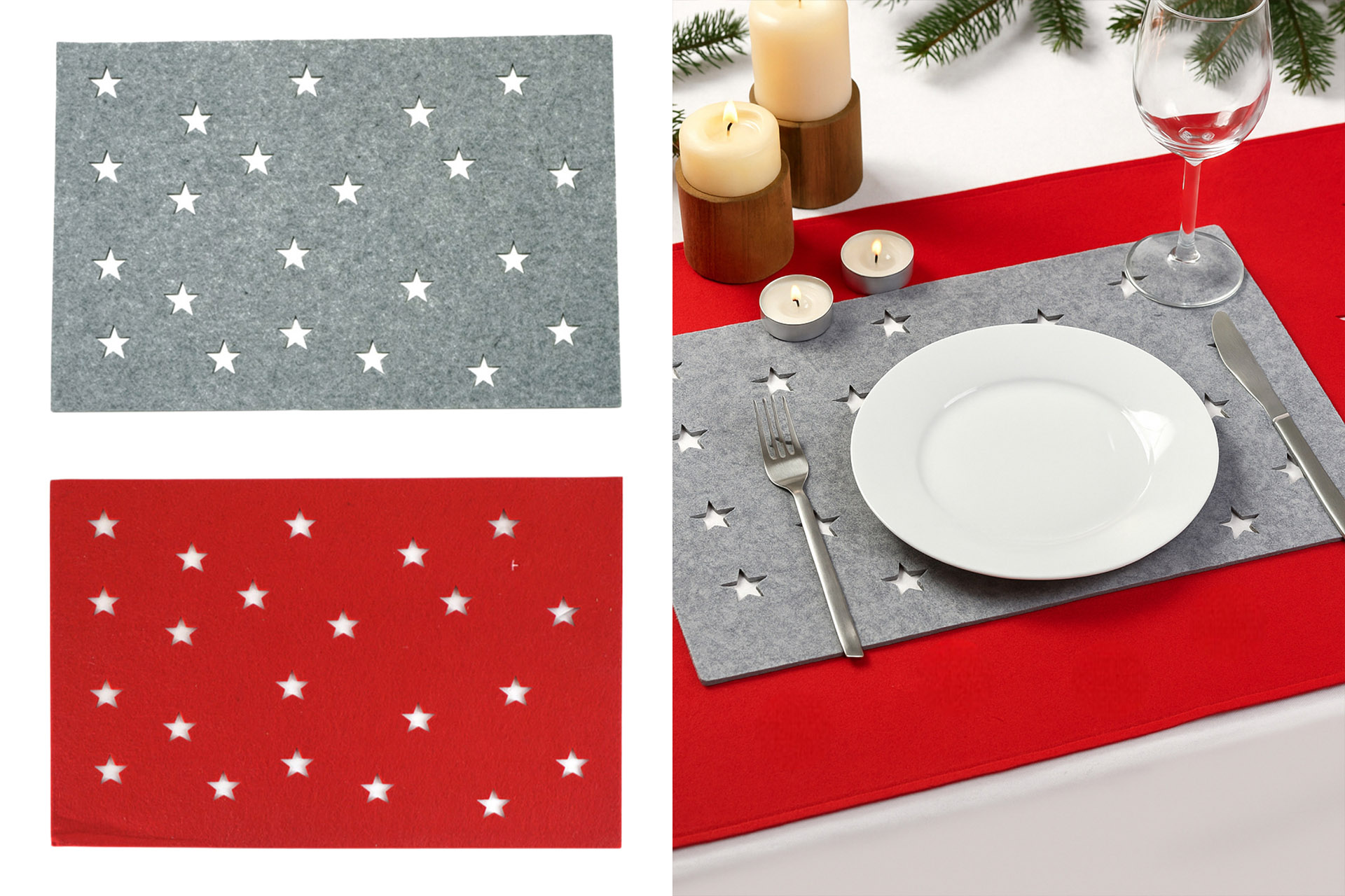 Decorative table placemat "Stars", 45x30cm, 2 colors Colors: red, gray Material: felt Hangtag
