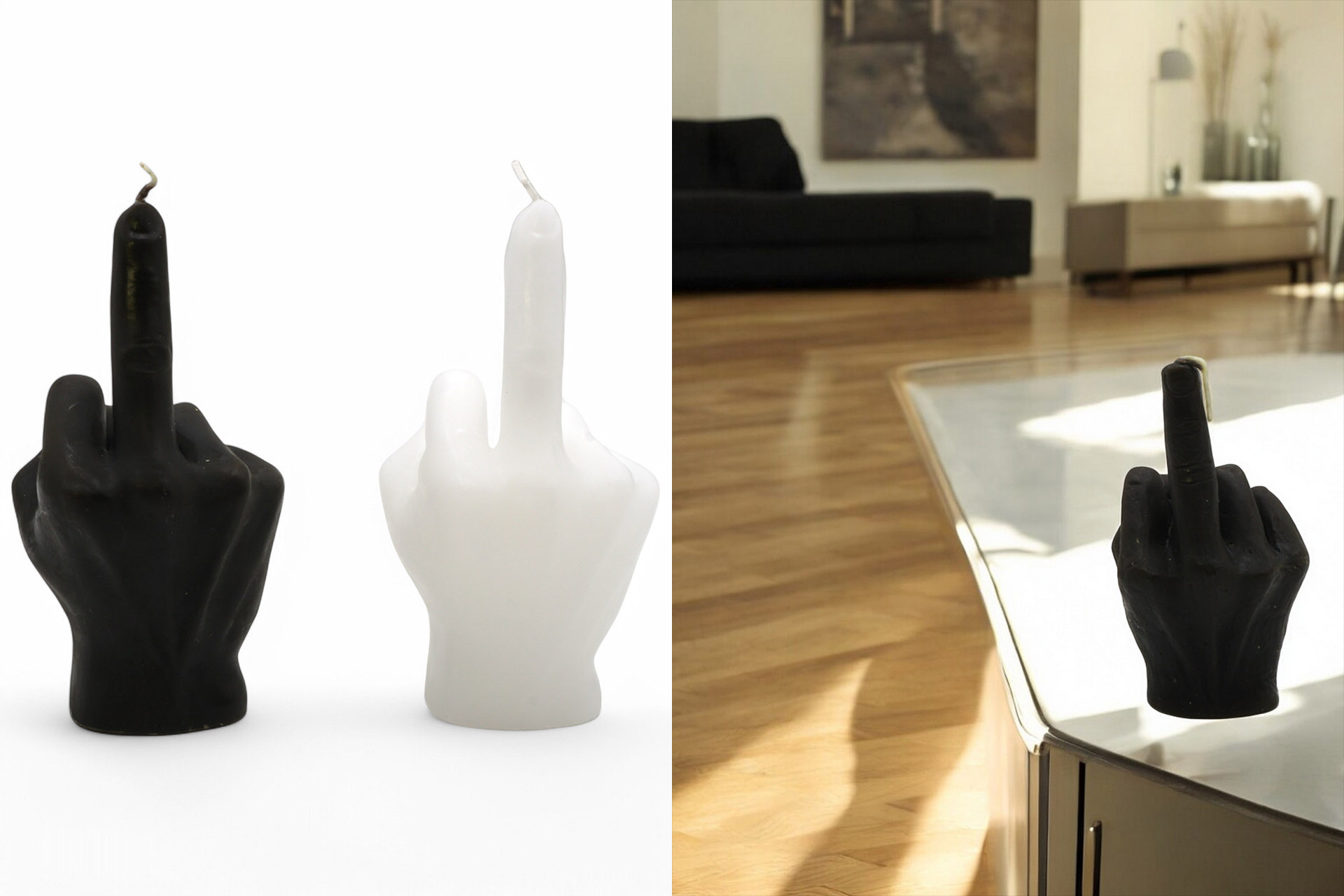 Kerze "Mittelfinger", 9x18cm, 2 Farben sortiert